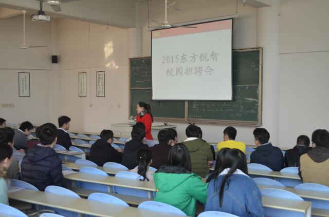 為了進(jìn)一步促進(jìn)計(jì)算機(jī)專業(yè)學(xué)生就業(yè)工作,將優(yōu)秀大學(xué)生充實(shí)到社會(huì),促進(jìn)人才的良性循環(huán)。2015年12月17日下午,計(jì)算機(jī)系在一號(hào)樓501教室舉行計(jì)算機(jī)應(yīng)用專業(yè)專場(chǎng)招聘會(huì),福州傳一科技、東方睿智教育公司前來招聘。
