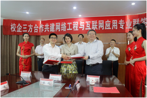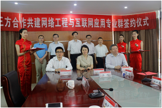2016年5月6日上午,華三通信全球技術(shù)服務(wù)部副總裁朱冬光、金科執(zhí)行總裁林惠斌等一行8人來(lái)院商談深化校企合作并與我院簽訂共建網(wǎng)絡(luò)工程與互聯(lián)網(wǎng)應(yīng)用專業(yè)群協(xié)議。