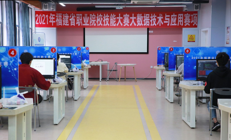 2021年福建省職業(yè)院校技能大賽大數(shù)據(jù)技術(shù)與應(yīng)用賽項(xiàng)由我校承辦,共有來自全省20所高職院校、60名選手參賽。本次競賽內(nèi)容對接我省大數(shù)據(jù)產(chǎn)業(yè),面向生產(chǎn)典型工作任務(wù),考察選手大數(shù)據(jù)平臺搭建、數(shù)據(jù)采集、數(shù)據(jù)清洗分析、數(shù)據(jù)可視化及綜合分析的能力。我校作為承辦方,一是嚴(yán)格按照上級主管部門要求,做好常態(tài)化疫情防控工作,配備足夠防疫人員及物資,確保師生健康參賽;二是發(fā)揮我校國家級軟件技術(shù)高水平專業(yè)群優(yōu)勢,提供高性能服務(wù)器、交換機(jī)等設(shè)備,確保比賽模擬環(huán)境與生產(chǎn)真實(shí)環(huán)境接近;三是提供師生交流平臺,實(shí)現(xiàn)“以賽促學(xué)、以賽促教、以賽促改”效果,“經(jīng)驗(yàn)分享、成果交流”,共同提升我省高職院校大數(shù)據(jù)技術(shù)技能人才培養(yǎng)水平,服務(wù)福建高質(zhì)量發(fā)展超越。