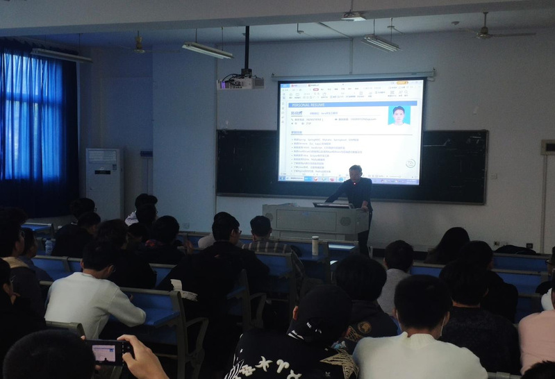 2021年11月11日早上10:00,阿里巴巴大數(shù)據(jù)學(xué)院進(jìn)入企業(yè)的“敲門(mén)磚”就業(yè)指導(dǎo)專(zhuān)題職素課程講座順利在實(shí)驗(yàn)樓312教室開(kāi)講,阿里巴巴大數(shù)據(jù)學(xué)院軟件技術(shù)專(zhuān)業(yè)九十余名學(xué)生參加講座?;劭萍瘓F(tuán)邀請(qǐng)傳一卓躍公司副總經(jīng)理吳峰為2019級(jí)軟件技術(shù)專(zhuān)業(yè)學(xué)生進(jìn)行授課,課程講座以現(xiàn)場(chǎng)分享為主,吳峰老師從簡(jiǎn)歷制作的前期準(zhǔn)備、簡(jiǎn)歷制作的原則、簡(jiǎn)歷的投遞以及面試技巧、面試后的結(jié)果跟蹤等幾個(gè)進(jìn)行闡述分享。