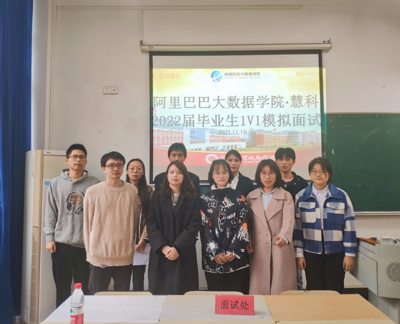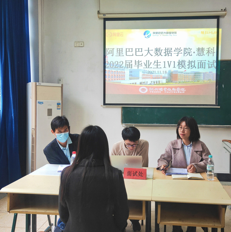 2021年11月18日阿里巴巴大數據學院&慧科為2022屆軟件技術專業(yè)學生開展1V1模擬面試活動,現場邀請到了慧科集團華南運營中心就業(yè)主管吳佳嬌老師進行模擬面試、還特邀慧科集團專業(yè)老師劉偉、蔣政彪老師把關同學們簡歷中技術層面內容。