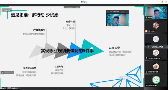 本次講座圍繞大學(xué)生職業(yè)生涯規(guī)劃的主題展開,張時(shí)赫老師就大學(xué)生就業(yè)形勢分析、人生三大發(fā)展階段、平衡職場與生活和職育計(jì)劃進(jìn)行了專業(yè)的講解分析,幫助同學(xué)們加強(qiáng)對(duì)大學(xué)生涯規(guī)劃認(rèn)識(shí)的清晰度,并通過專業(yè)的職業(yè)規(guī)劃解決自身的職業(yè)問題。講座最后和同學(xué)們分享了慧科職育計(jì)劃,眾多學(xué)生紛紛參與咨詢,老師在群內(nèi)為大家答疑解難。