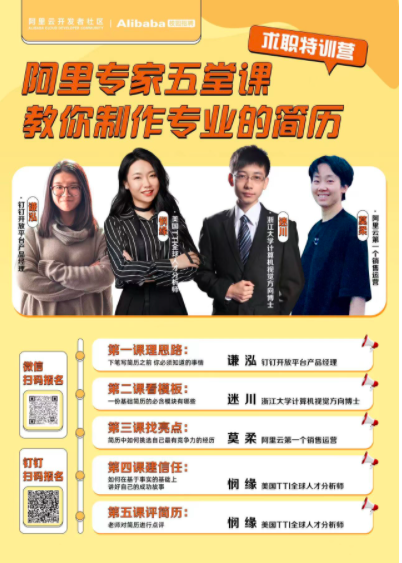 金三銀四黃金求職季,為了幫助同學(xué)們獲得一份專(zhuān)業(yè)簡(jiǎn)歷,本次活動(dòng)圍繞寫(xiě)簡(jiǎn)歷思路、簡(jiǎn)歷包含的模塊、如何挑選自己最有競(jìng)爭(zhēng)力的經(jīng)歷、講好自己的成功故事、簡(jiǎn)歷點(diǎn)評(píng)等方面進(jìn)行授課。幫助同學(xué)們理清思路,深挖簡(jiǎn)歷承載的價(jià)值,從面試官的角度切入講解一份基礎(chǔ)簡(jiǎn)歷的必含模塊,學(xué)習(xí)如何有效提升經(jīng)歷部分的說(shuō)服力。最后完成參營(yíng)任務(wù)的同學(xué)們也都獲得阿里云開(kāi)發(fā)者社區(qū)頒發(fā)的電子版結(jié)營(yíng)證書(shū)。