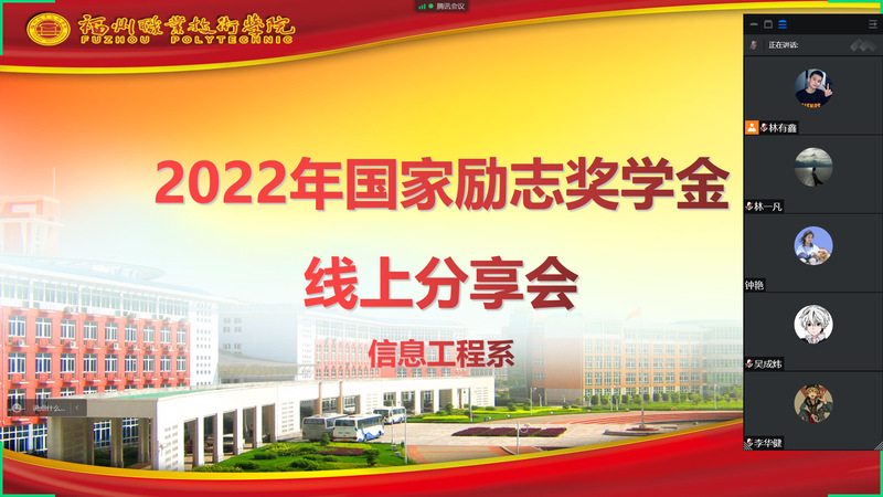 此次勵志宣講活動邀請到了兩位2020級的同學(xué)巫斌良與覃燦新以及2019級學(xué)長洪福維來分享他們在學(xué)習(xí)和生活中的經(jīng)驗(yàn),以及如何獲得國家勵志獎學(xué)金等,以此方式來激發(fā)我系同學(xué)們的內(nèi)在動力,增強(qiáng)大家在學(xué)習(xí)生活上的積極性。同時(shí)通過此次宣講活動讓同學(xué)們在日后的學(xué)習(xí)生活中以國家勵志獎學(xué)金獲得者為榜樣,志存高遠(yuǎn),錘煉意志,做敢于筑夢、勇于追夢、勤于圓夢的新時(shí)代大學(xué)生,以昂揚(yáng)的斗志和飽滿的熱情投身到強(qiáng)國建設(shè)中,為祖國貢獻(xiàn)一份自己的力量。