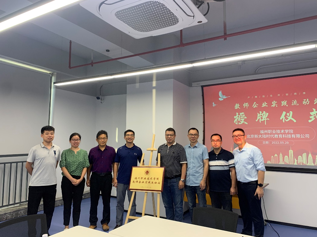 為推動學(xué)校雙高建設(shè),打造高水平的“雙師型”教師隊伍,2022年9月29日福州職業(yè)技術(shù)學(xué)院信息工程系魏明樺副主任帶隊前往新大陸科技集團(tuán)中國(福建)數(shù)字產(chǎn)業(yè)公共實訓(xùn)基地,調(diào)研人才培養(yǎng)實習(xí)實訓(xùn)、就業(yè)銜接、校企合作等內(nèi)容,并舉行“雙師型教師培訓(xùn)基地”與“教師企業(yè)實踐流動站”揭牌儀式。