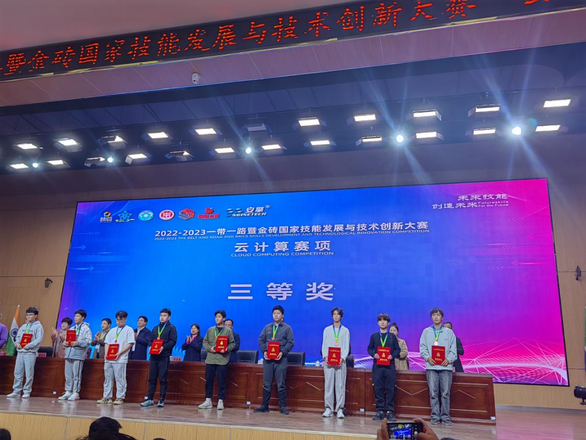 2022-2023一帶一路暨金磚國家技能發(fā)展與技術創(chuàng)新大賽“云計算”賽項決賽在山東省東營科技職業(yè)學院舉辦,共有來自全國71所高職院校136支代表隊參加。經過激烈的角逐,我校2020級軟件技術專業(yè)羅颷同學獲一等獎、2021級云計算技術與運用專業(yè)孫晶義同學獲三等獎,指導教師楊雅芳獲優(yōu)秀指導教師獎,學校獲評最佳組織獎。