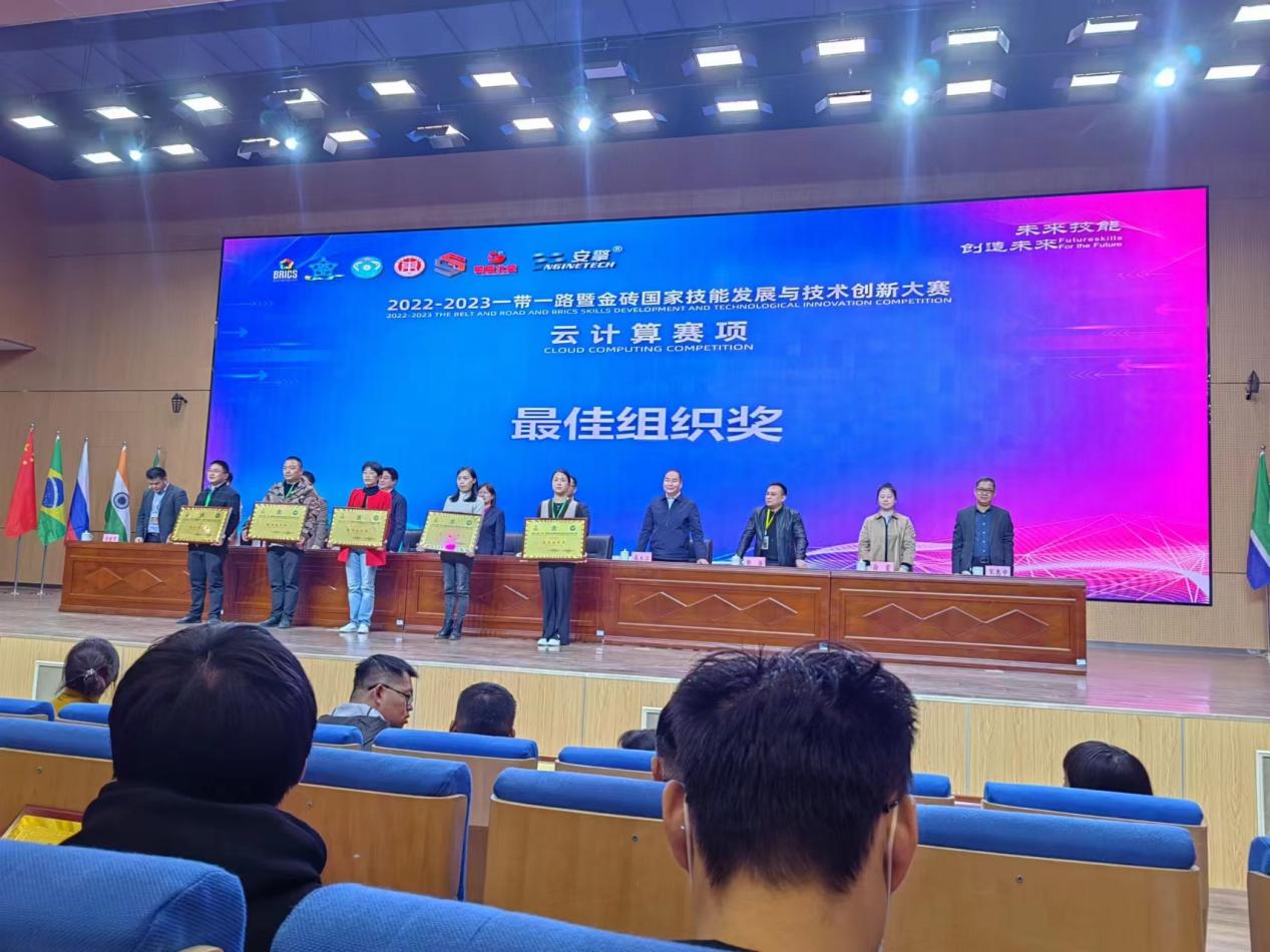 2022-2023一帶一路暨金磚國家技能發(fā)展與技術(shù)創(chuàng)新大賽“云計(jì)算”賽項(xiàng)決賽在山東省東營科技職業(yè)學(xué)院舉辦,共有來自全國71所高職院校136支代表隊(duì)參加。經(jīng)過激烈的角逐,我校2020級(jí)軟件技術(shù)專業(yè)羅颷同學(xué)獲一等獎(jiǎng)、2021級(jí)云計(jì)算技術(shù)與運(yùn)用專業(yè)孫晶義同學(xué)獲三等獎(jiǎng),指導(dǎo)教師楊雅芳獲優(yōu)秀指導(dǎo)教師獎(jiǎng),學(xué)校獲評(píng)最佳組織獎(jiǎng)。