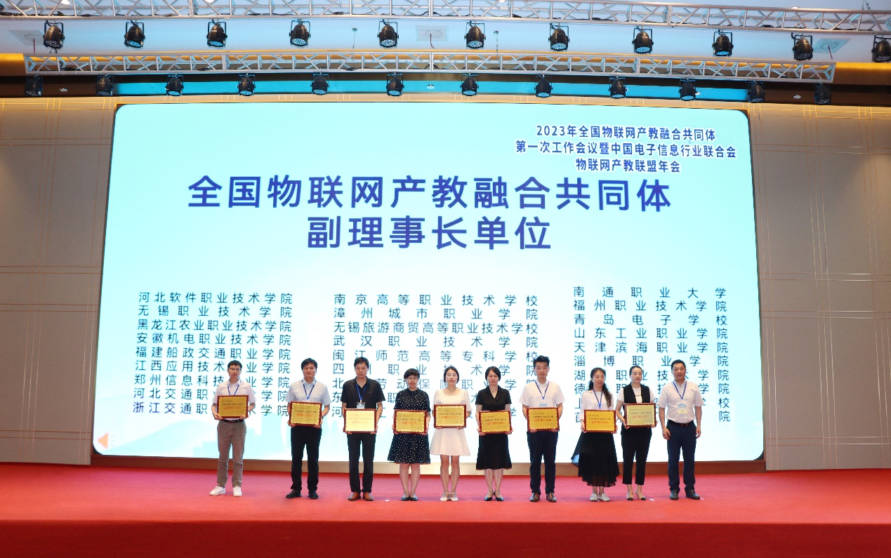2023年9月20日全國(guó)物聯(lián)網(wǎng)產(chǎn)教融合共同體第一次工作會(huì)議暨中國(guó)電子信息行業(yè)聯(lián)合會(huì)物聯(lián)網(wǎng)產(chǎn)教聯(lián)盟年會(huì)在福州召開(kāi)。本次會(huì)議由全國(guó)物聯(lián)網(wǎng)產(chǎn)教融合共同體、中國(guó)電子信息行業(yè)聯(lián)合會(huì)物聯(lián)網(wǎng)產(chǎn)教聯(lián)盟及新大陸科技集團(tuán)有限公司主辦。福州職業(yè)技術(shù)學(xué)院當(dāng)選全國(guó)物聯(lián)網(wǎng)產(chǎn)教融合共同體副理事長(zhǎng)單位,副校長(zhǎng)張?zhí)m英代表學(xué)校接受授牌。