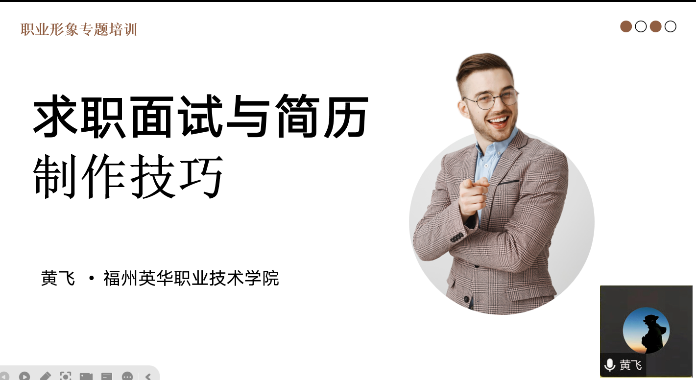 為深化學生對就業(yè)升學的發(fā)展認知,指導學生好提升面試技巧與職業(yè)形象,10月16日晚,信息工程系舉辦求職面試與簡歷制作在線上講座,本次講座由福州英華職業(yè)技術學院黃飛老師主講,來自各專業(yè)的學生代表參加了此次活動。