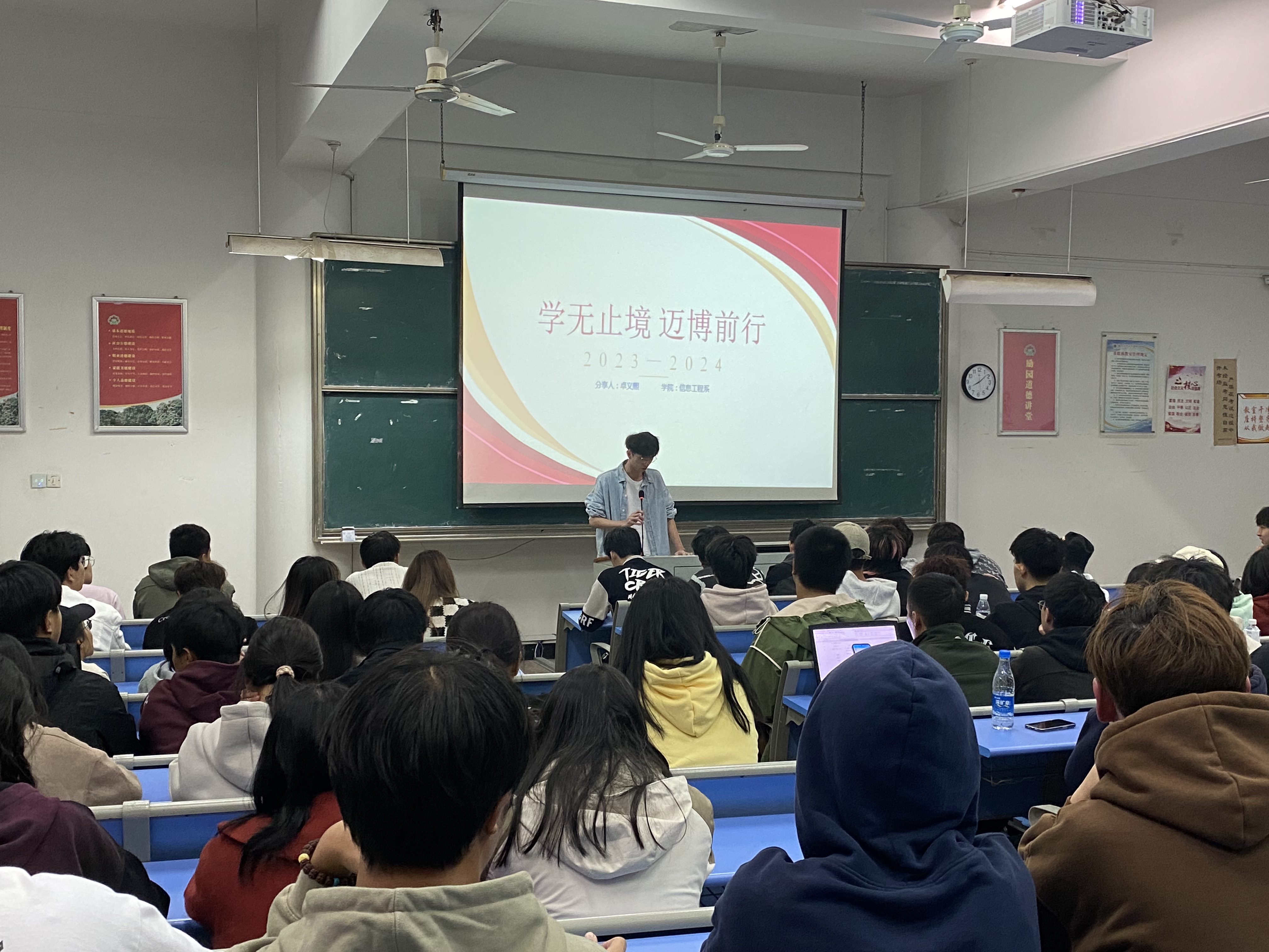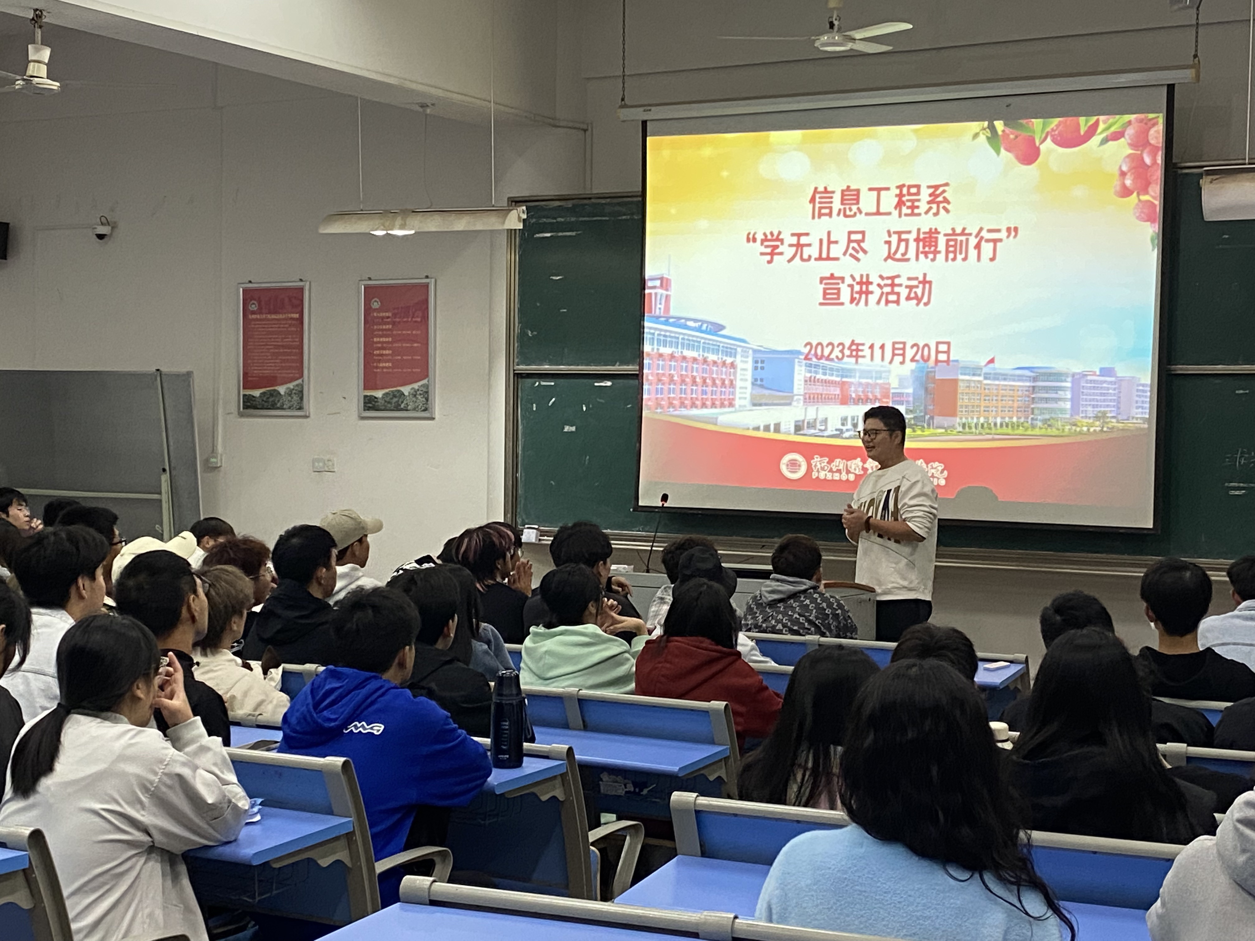 青年是祖國的未來、民族的希望。為提高青年學(xué)生對黨的基本理論、基本路線、基本方略的領(lǐng)悟力,引領(lǐng)團(tuán)員青年認(rèn)真學(xué)習(xí)領(lǐng)會習(xí)近平新時代中國特色社會主義思想,號召同學(xué)們做有理想、敢擔(dān)當(dāng)、能吃苦、肯奮斗的新時代好青年,2023年11月20日,信息工程系在厚實(shí)樓401開展“學(xué)無止盡 邁博前行”主題宣講活動。