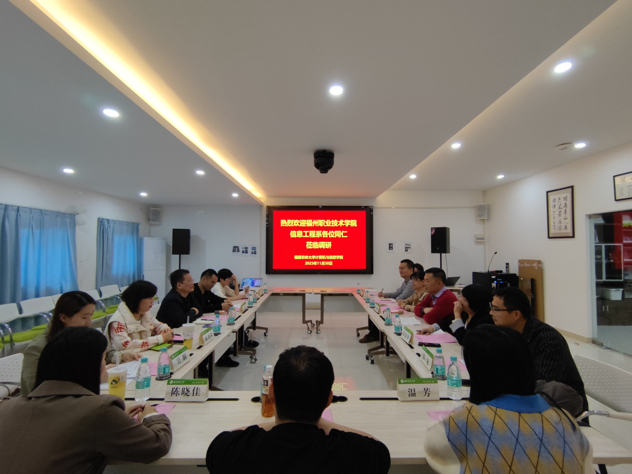 為貫徹落實(shí)學(xué)校主題教育和大興調(diào)研工作有關(guān)要求,持續(xù)推進(jìn)“一站式”學(xué)生社區(qū)功能建設(shè),11月30日,信息工程系黨總支書(shū)記陳樂(lè)平帶隊(duì)前往福建農(nóng)林大學(xué)計(jì)算機(jī)與信息學(xué)院開(kāi)展調(diào)研交流活動(dòng)。