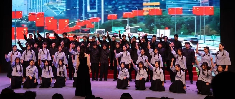 比賽前期,學院合唱團、舞蹈團成員們夜以繼日地努力排練。他們在夜晚的燈光下齊聚,仔細聆聽老師的指導,反復練習每一句歌詞和臺詞,直至旋律與歌詞完美融合。除了日常訓練,他們還投入大量時間精力進行動作編排、并練習朗誦和情景演繹,用心感受歌曲與舞蹈背后的故事和情感。比賽當天,同學們憑借飽滿的精神狀態(tài)和創(chuàng)新的藝術構思,巧妙地將動作、朗誦、情景演繹相結合,將《旗正飄飄》與《青春之歌》中五四青年在國難當頭之際,以熱血和勇氣投身抗戰(zhàn)的壯烈景象表現(xiàn)得激情澎湃。觀眾們的陣陣掌聲不僅是對他們精彩表演的認可,更是對愛國情懷的共鳴。
