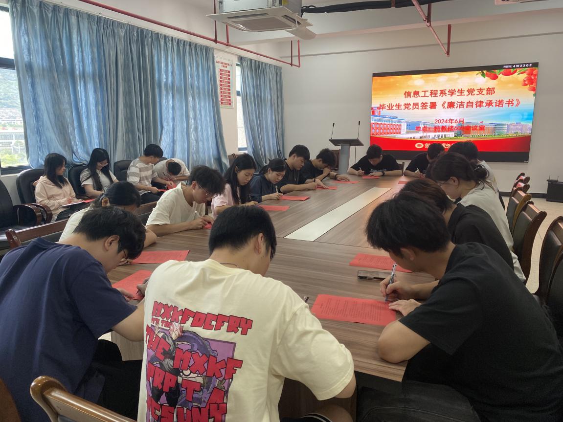 黨課結(jié)束后,畢業(yè)生黨員們紛紛表示將嚴格遵守黨的紀律和規(guī)矩,并在吳嫻老師的帶領(lǐng)下莊嚴簽署《廉潔自律承諾書》,進一步明確作為黨員的責任與擔當。