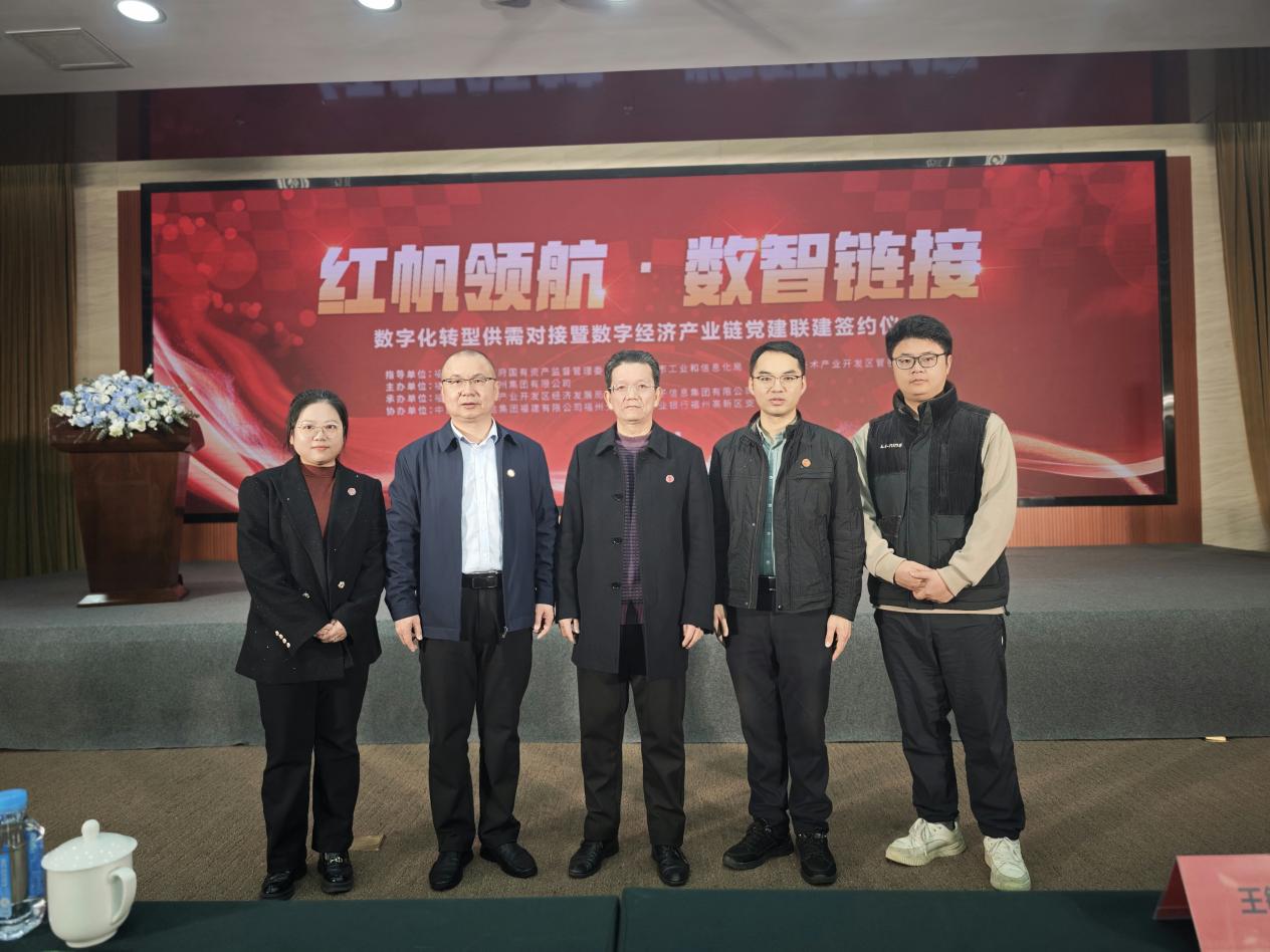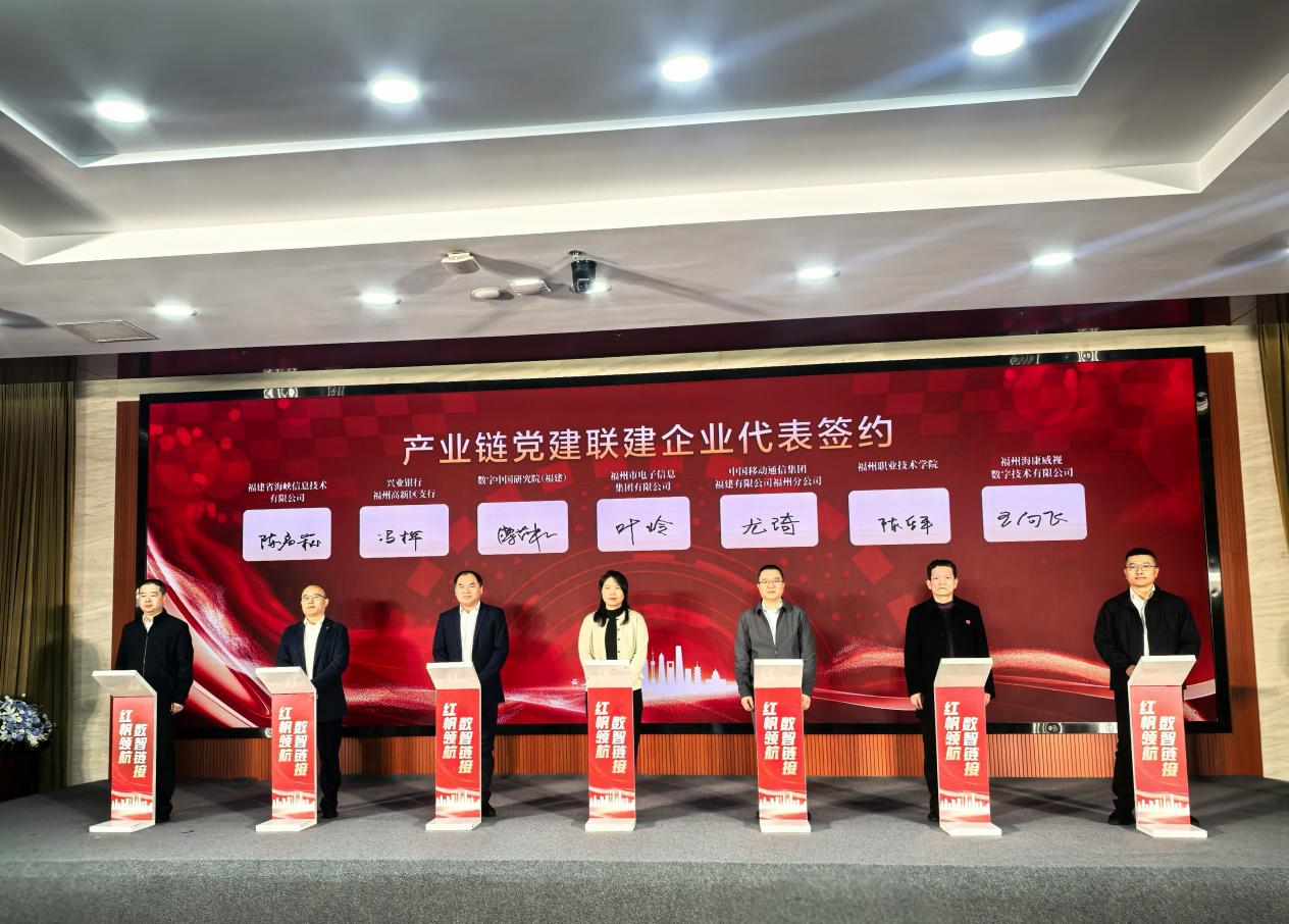2025年4月3日,由福州市數(shù)字福州集團(tuán)有限公司主辦,福州高新技術(shù)產(chǎn)業(yè)開發(fā)區(qū)經(jīng)濟(jì)發(fā)展局、福州市電子信息集團(tuán)有限公司承辦的“紅帆領(lǐng)航·數(shù)智鏈接”——數(shù)字化轉(zhuǎn)型供需對接暨數(shù)字經(jīng)濟(jì)產(chǎn)業(yè)鏈聯(lián)建簽約儀式在福州高新區(qū)管委會成功舉行,信息工程學(xué)院黨委班子成員參與了此次活動。學(xué)院黨委書記陳樂平代表校方與福州市電子信息集團(tuán)有限公司、福州??低晹?shù)字技術(shù)有限公司、中國移動通信集團(tuán)福建有限公司福州分公司等產(chǎn)業(yè)鏈企業(yè)代表共同簽約,充分發(fā)揮產(chǎn)業(yè)鏈黨建領(lǐng)航作用,共同助力企業(yè)數(shù)字化轉(zhuǎn)型。