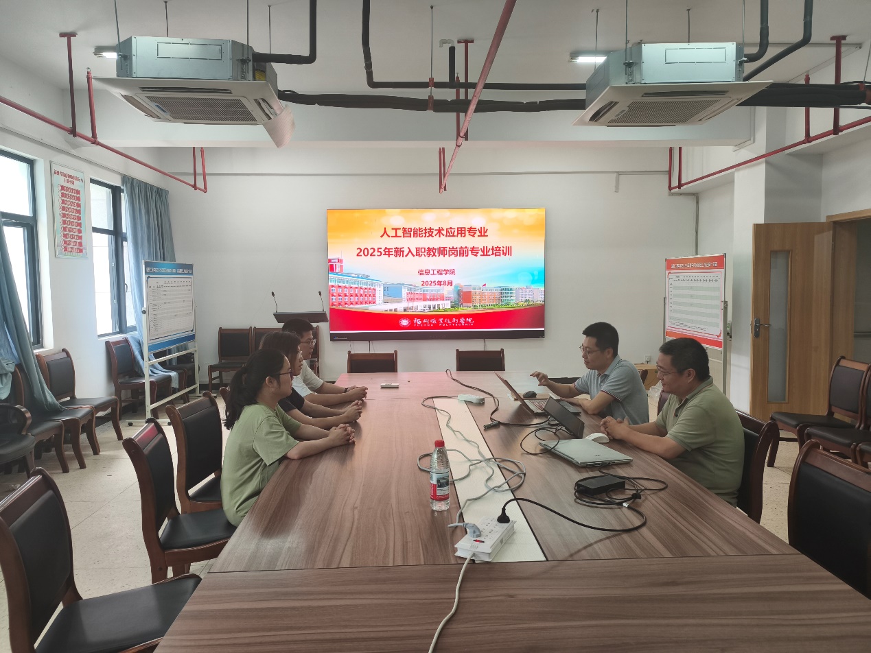 2025年8月28日下午2點(diǎn)在愛心樓606信息工程學(xué)院會(huì)議室人工智能技術(shù)應(yīng)用專業(yè)對(duì)2025年新入職教師進(jìn)行崗前專業(yè)培訓(xùn)。會(huì)議由副院長蔣偉杰博士主講,人工智能專業(yè)全體教師參加。