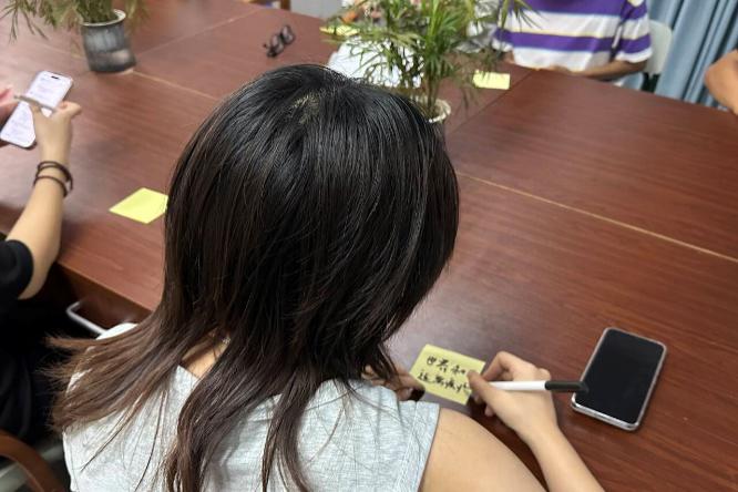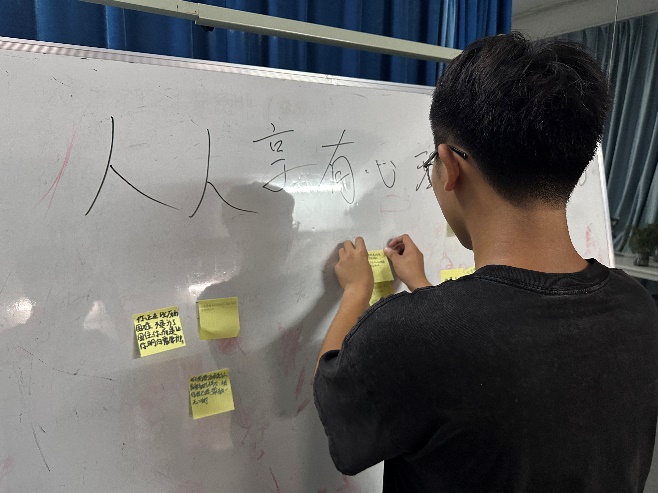 活動(dòng)伊始,同學(xué)們陸續(xù)來(lái)到博學(xué)社區(qū)活動(dòng)室,現(xiàn)場(chǎng)布置溫馨而舒適,展板上貼滿了五顏六色的便簽紙。同學(xué)們?cè)诒愫炆蠈懴伦约旱?“小煩惱” 與 “暖祝?!?,然后小心翼翼地貼在展板上,與他人分享自己的心聲。整個(gè)活動(dòng)過(guò)程中,同學(xué)們積極參與,現(xiàn)場(chǎng)氣氛熱烈而溫馨,大家在分享與傾訴中釋放了壓力,收獲了溫暖與力量。