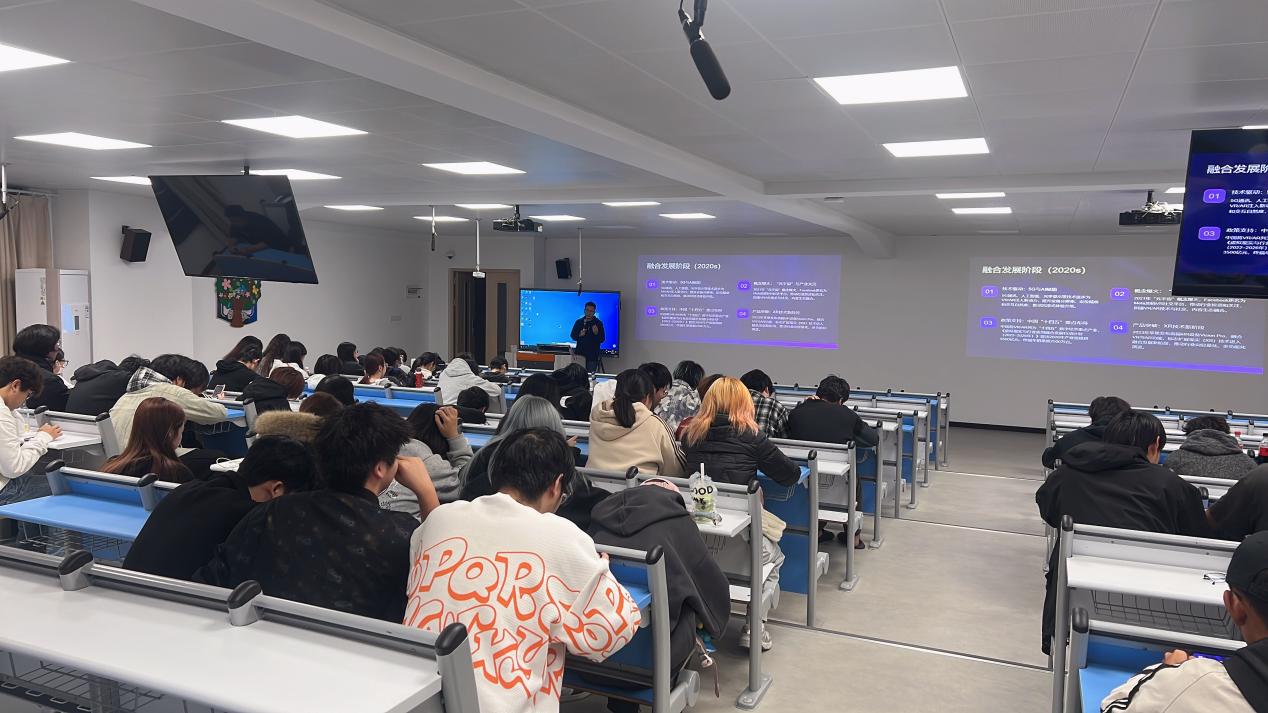 11月25日晚,福建網(wǎng)絡(luò)普天教育科技有限公司商務(wù)總監(jiān)張慶安帶來“AR/VR行業(yè)發(fā)展與職業(yè)規(guī)劃”專題分享。講座中,張慶安梳理了AR/VR技術(shù)演進(jìn)脈絡(luò),詳解交互設(shè)計、光學(xué)顯示等核心技術(shù)模塊,并結(jié)合行業(yè)發(fā)展動態(tài)介紹了算法工程師、交互體驗設(shè)計師等熱門就業(yè)崗位。他特別強(qiáng)調(diào),掌握Unity3D等工具的復(fù)合型人才正成為市場剛需,為VR專業(yè)及軟件五貫班學(xué)生指明了學(xué)習(xí)方向。