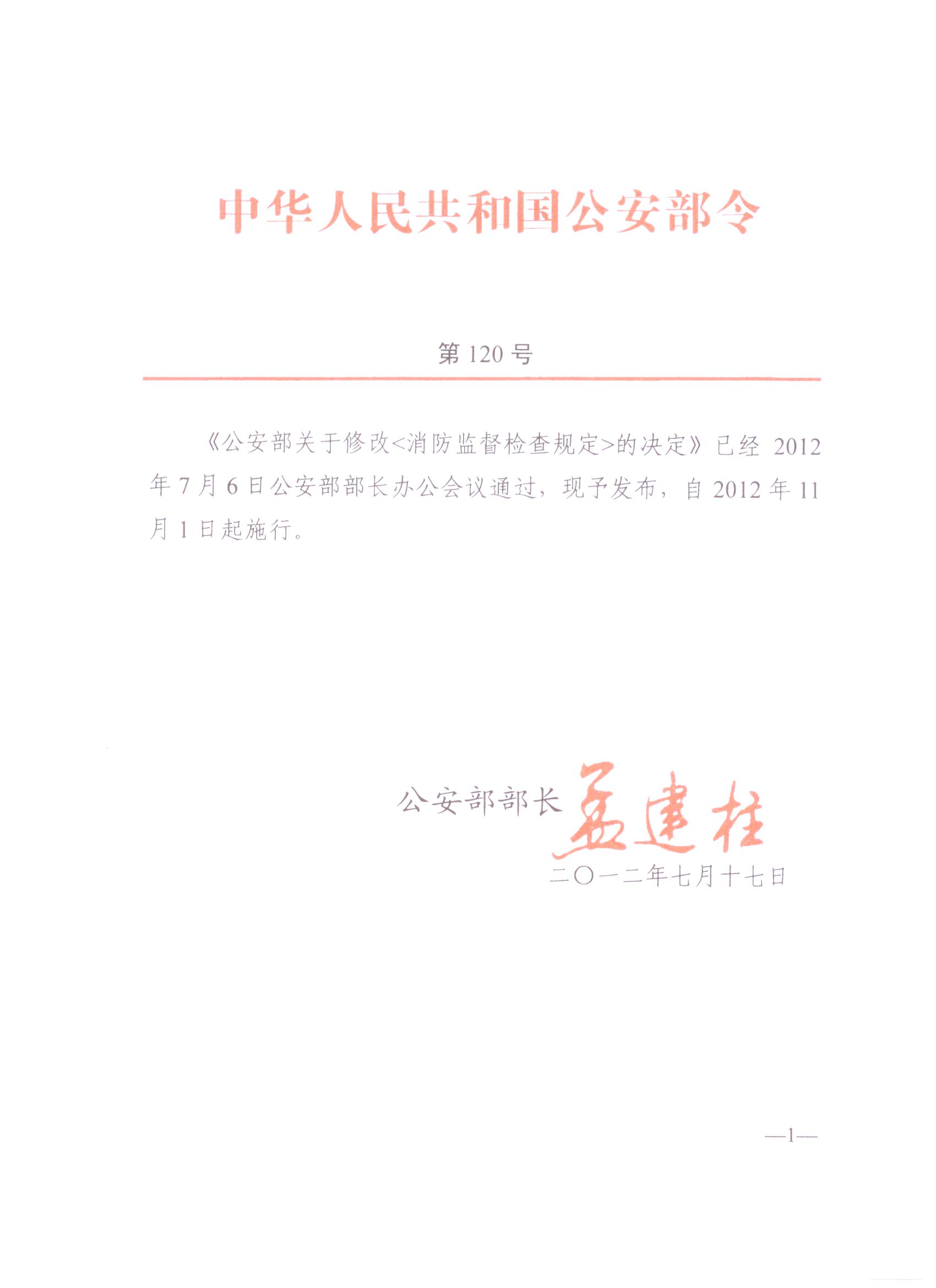 (2009年4月30日中華人民共和國公安部令第107號發(fā)布,根據(jù)2012年7月17日《公安部關(guān)于修改<消防監(jiān)督檢查規(guī)定>的決定》修訂)