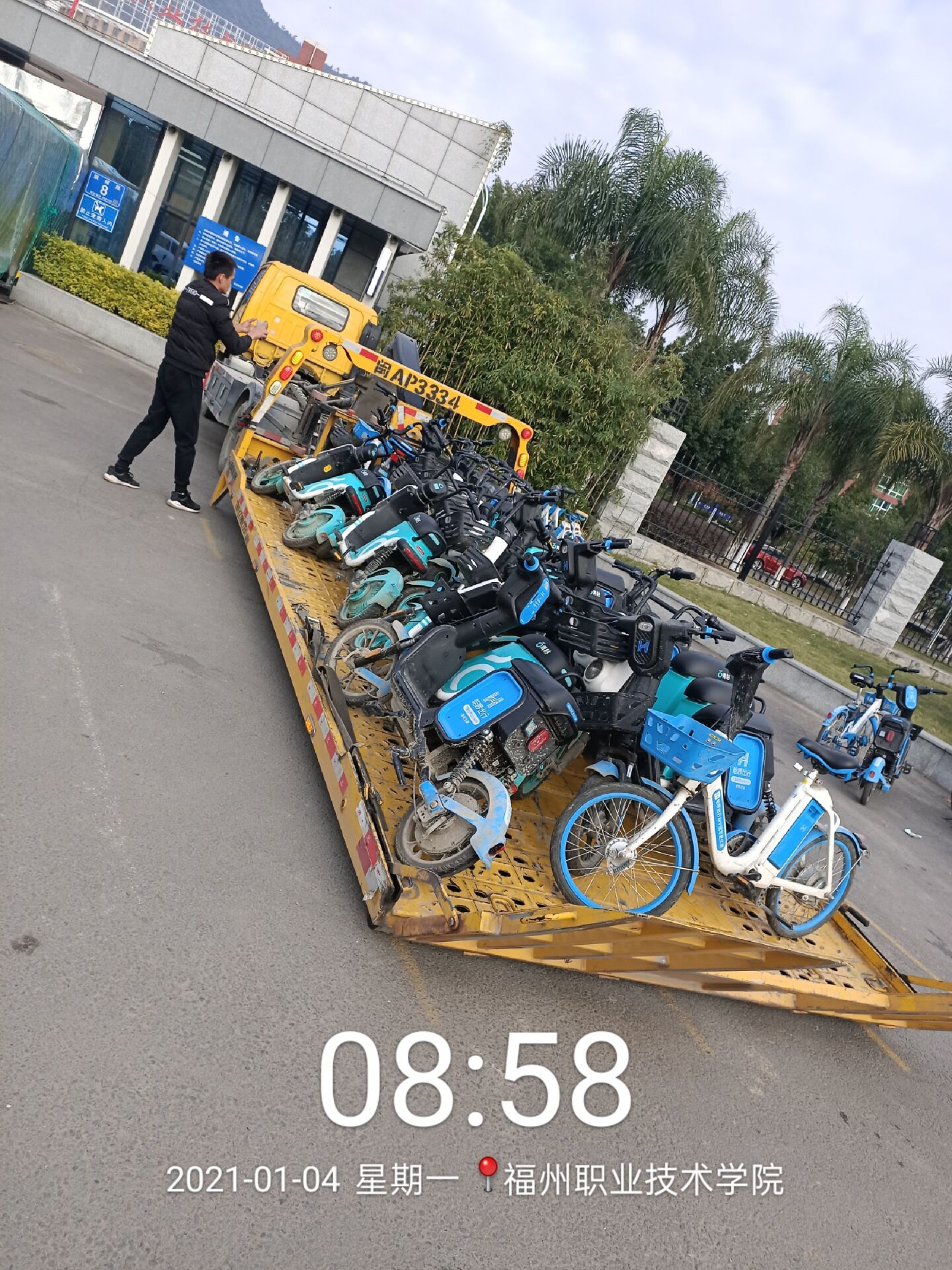 保衛(wèi)處協(xié)同上街城管大隊(duì)在學(xué)校門口整治校園周邊共享助力車現(xiàn)場(chǎng)
