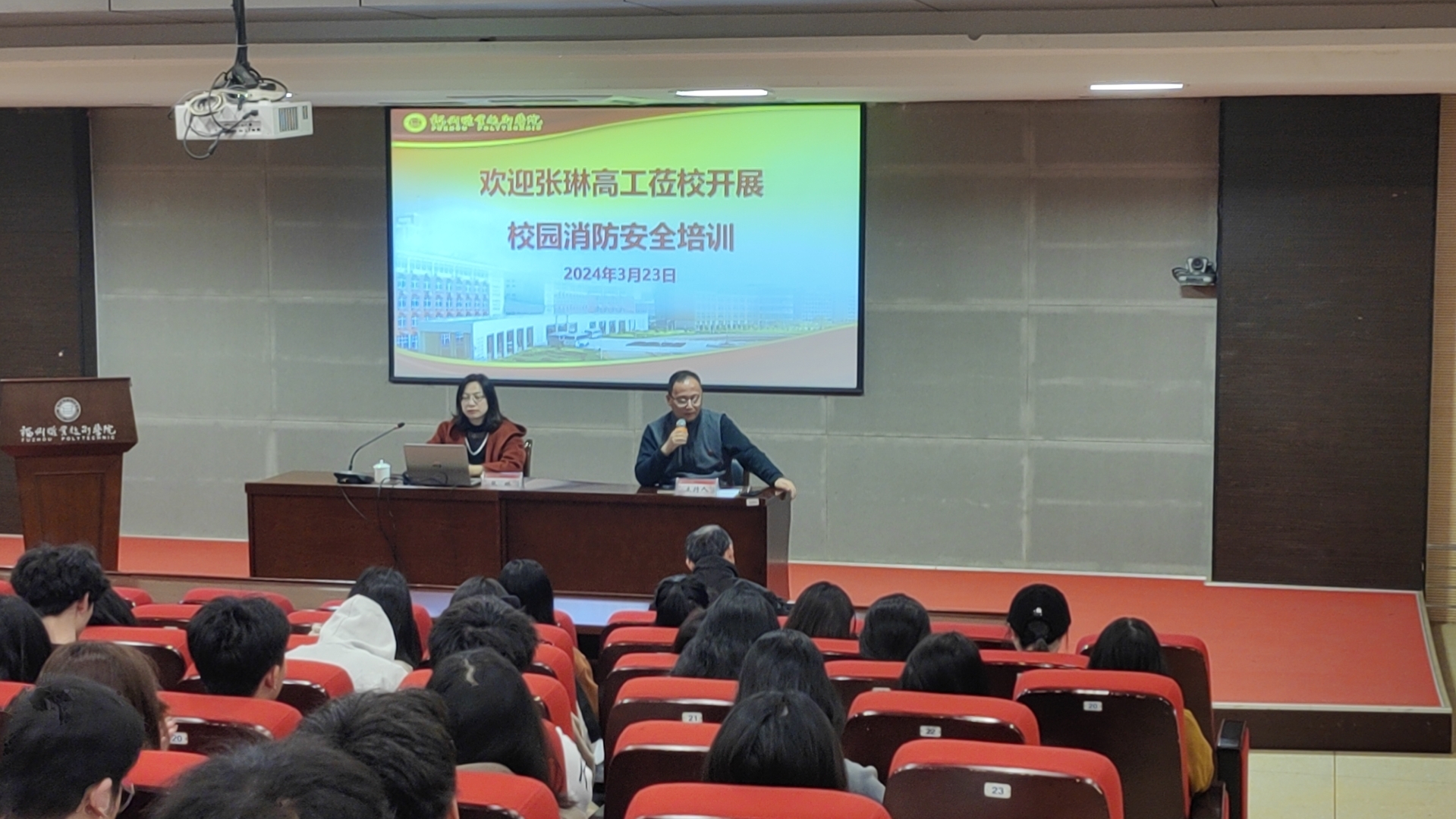 3月23日,我校特邀福州市消防救援支隊(duì)張琳高工蒞校開(kāi)展消防安全知識(shí)講座,張琳高工在會(huì)上為大家講解日?;馂?zāi)預(yù)防以及應(yīng)急自救等相關(guān)的消防安全知識(shí),學(xué)校各院部輔導(dǎo)員、安全員、后勤保障服務(wù)人員以及部分學(xué)生計(jì)200余參加消防安全知識(shí)培訓(xùn)。