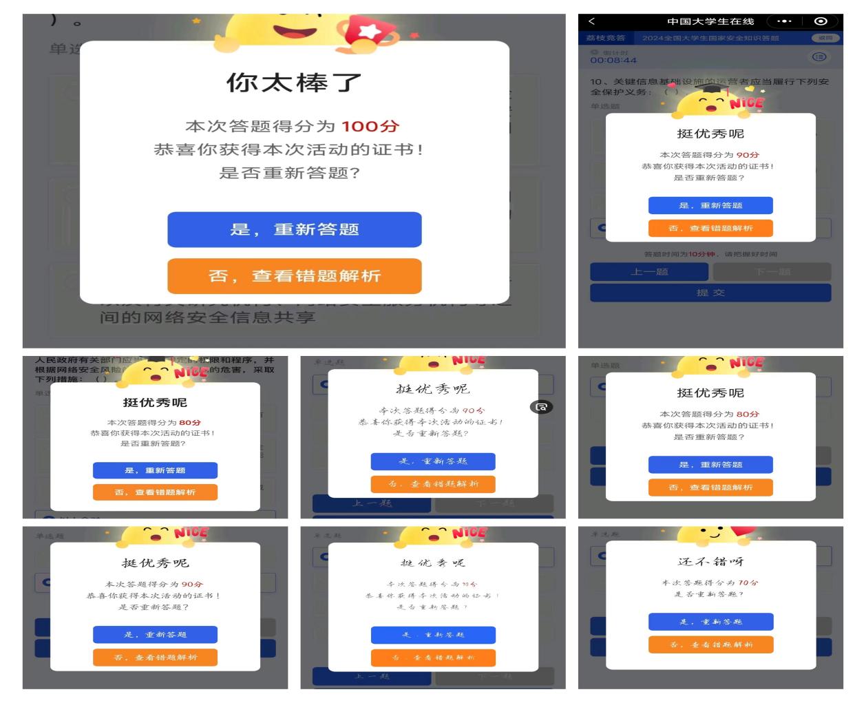 4.通過大學(xué)生在線網(wǎng)站或微信公眾號(hào)參與“全國(guó)大學(xué)生國(guó)家安全知識(shí)答題”活動(dòng),引導(dǎo)大學(xué)生堅(jiān)定維護(hù)國(guó)家政權(quán)安全、制度安全、意識(shí)形態(tài)安全,營(yíng)造國(guó)家安全人人參與、人人有責(zé)的濃厚氛圍。