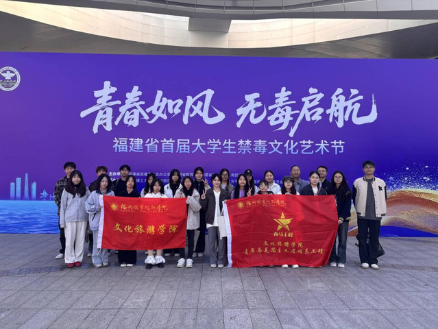 11月21日,學(xué)校保衛(wèi)處、文化旅游學(xué)院師生30人參加福建省首屆大學(xué)生禁毒文化藝術(shù)節(jié)。此次藝術(shù)節(jié)以“青春如風(fēng).無毒起航”為主題,分社集市展覽和頒獎典禮兩個環(huán)節(jié)。