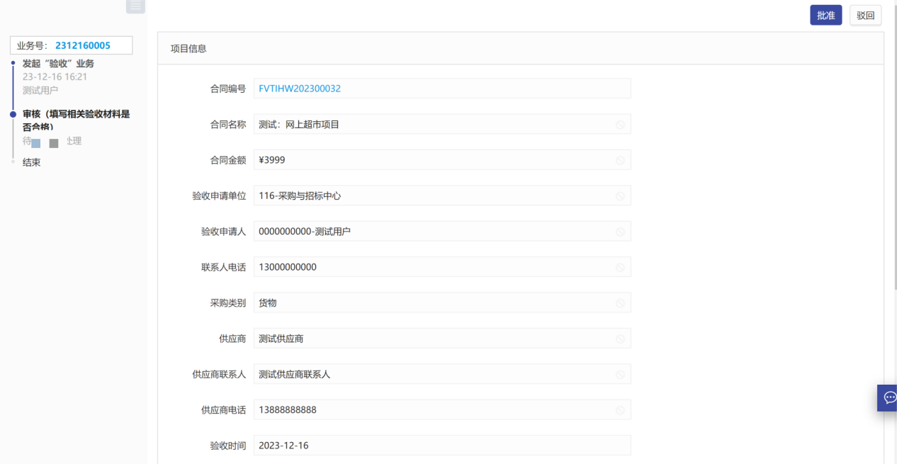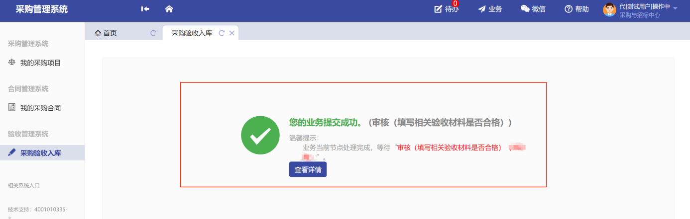 提交驗(yàn)收申請(qǐng)審核后,等待審批人審核,如圖所示:
