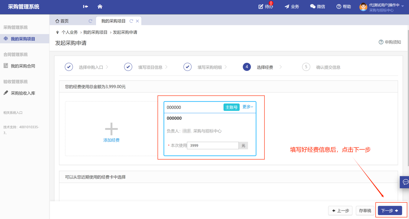 第五步:在經(jīng)費(fèi)頁面填寫所需使用的相關(guān)經(jīng)費(fèi)信息,如圖所示: