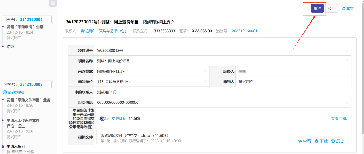如無需轉(zhuǎn)審,直接點(diǎn)擊右上角的【批準(zhǔn)】按鈕,如圖所示: