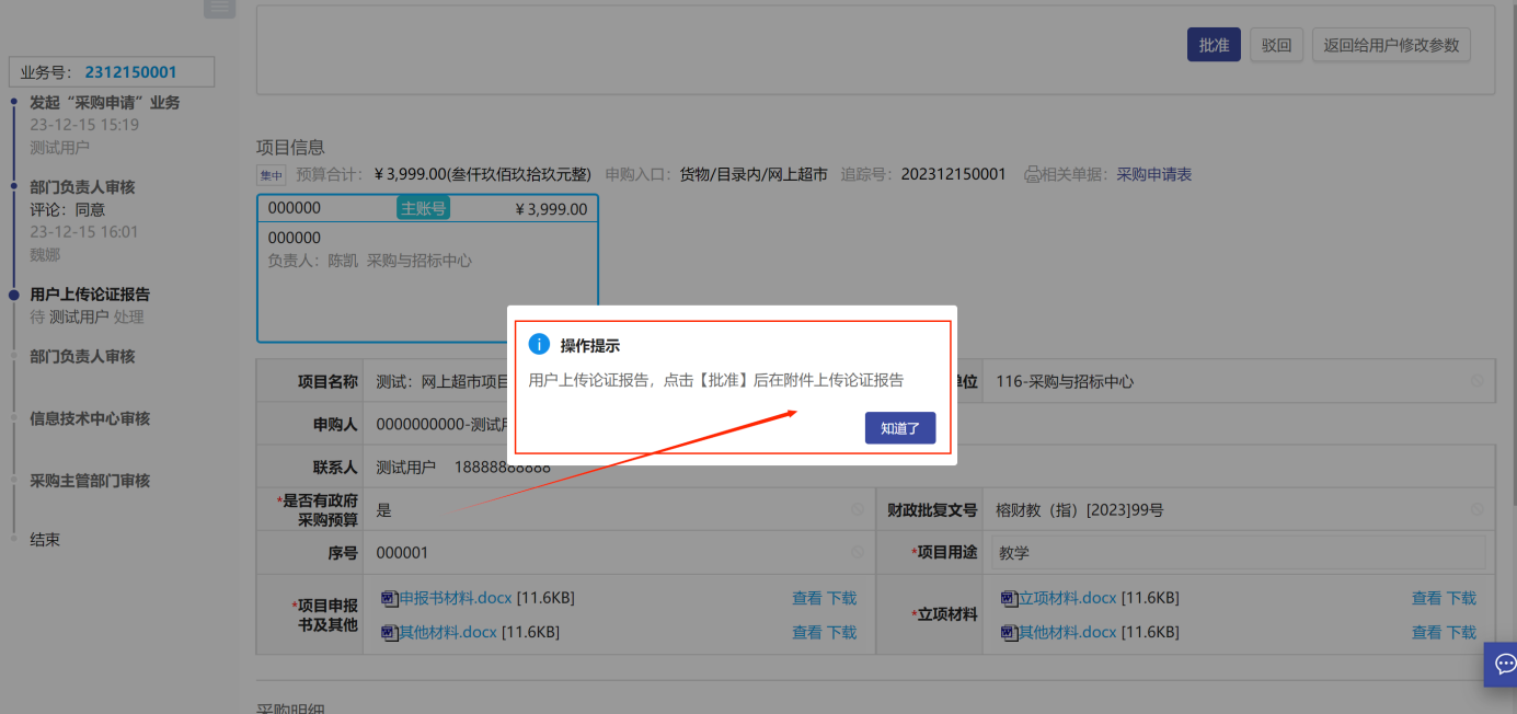 注意:【網(wǎng)上超市】采購有個(gè)環(huán)節(jié)需要用戶老師上傳論證報(bào)告,如圖所示: