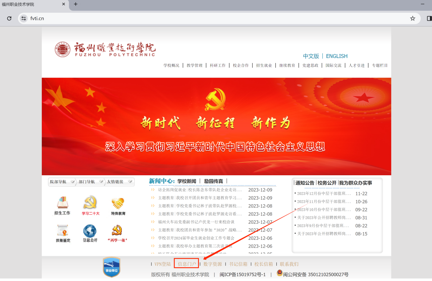 登陸學(xué)校官網(wǎng),點(diǎn)擊校園門戶信息,通過統(tǒng)一身份認(rèn)證登錄,如圖所示: