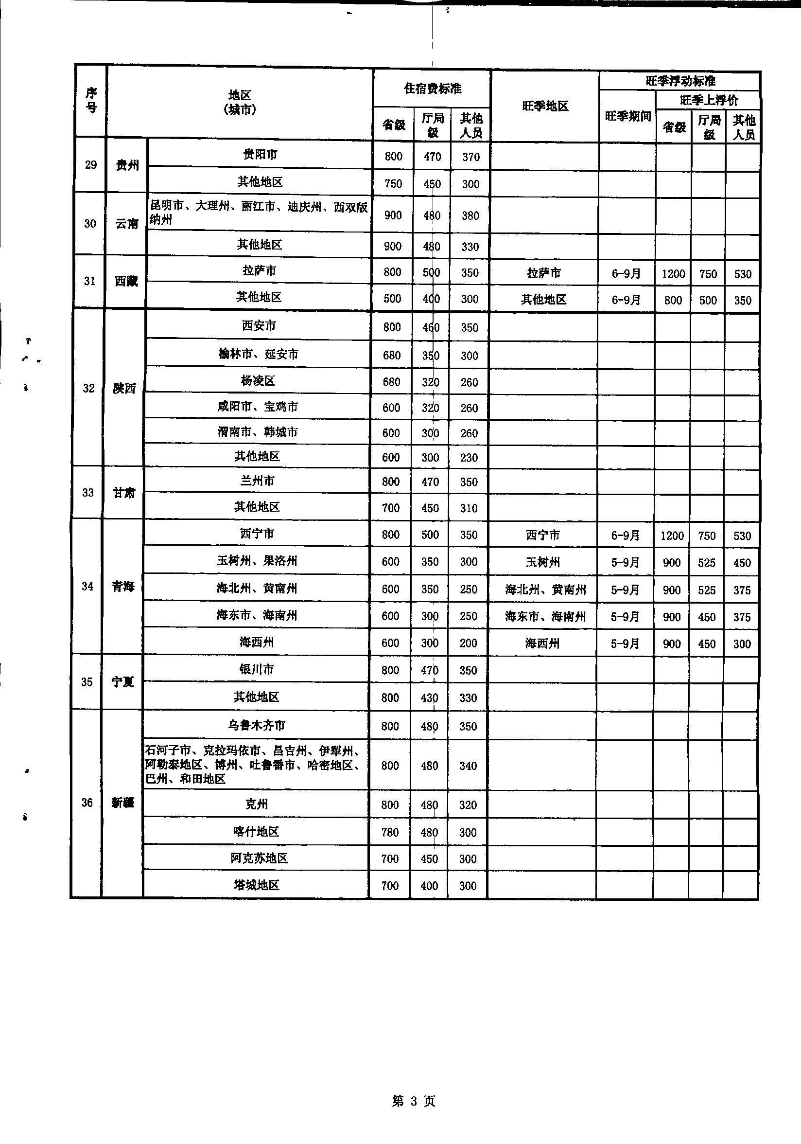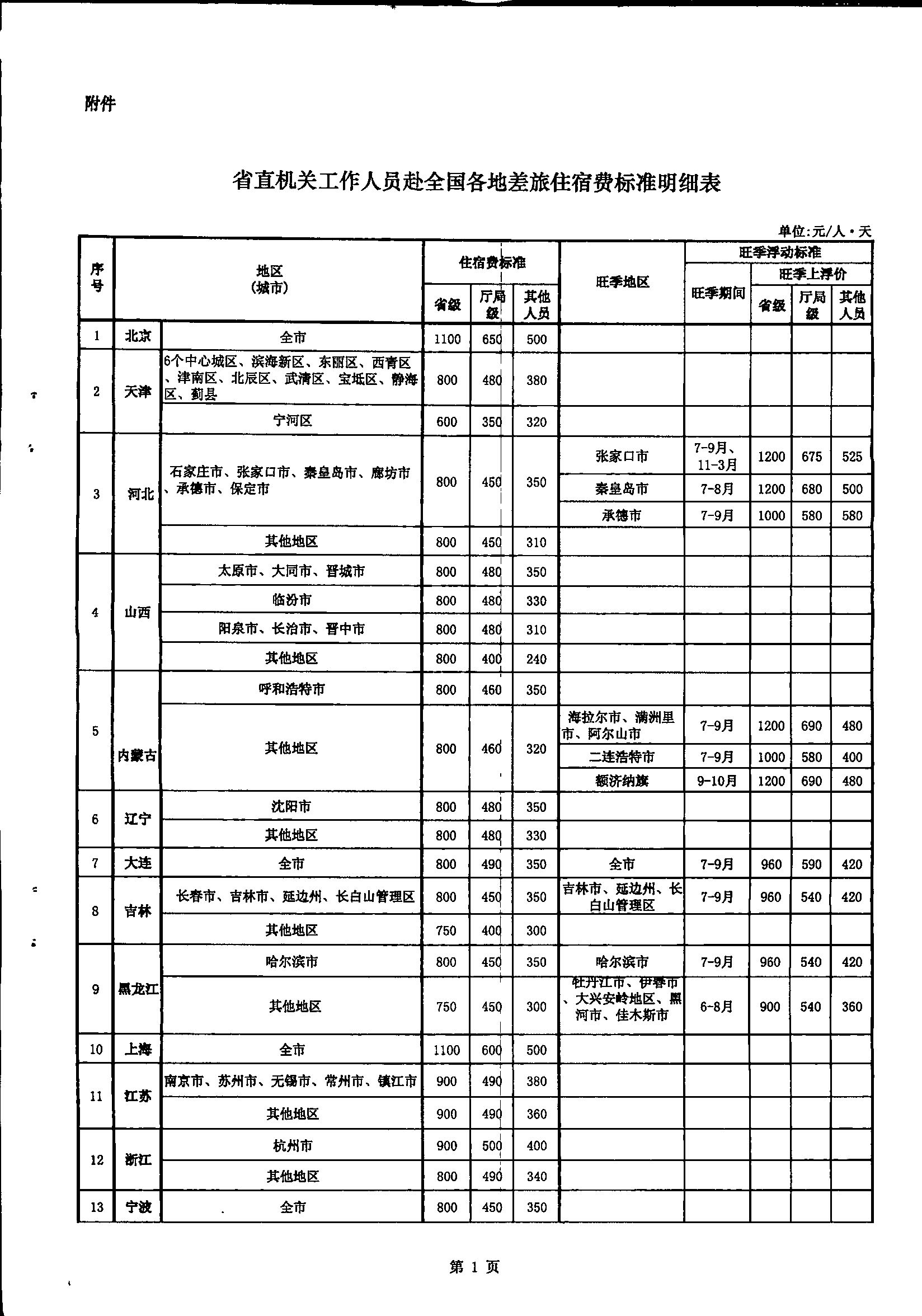 省直機(jī)關(guān)工作人員赴全國各地差旅住宿費(fèi)標(biāo)準(zhǔn)明細(xì)表