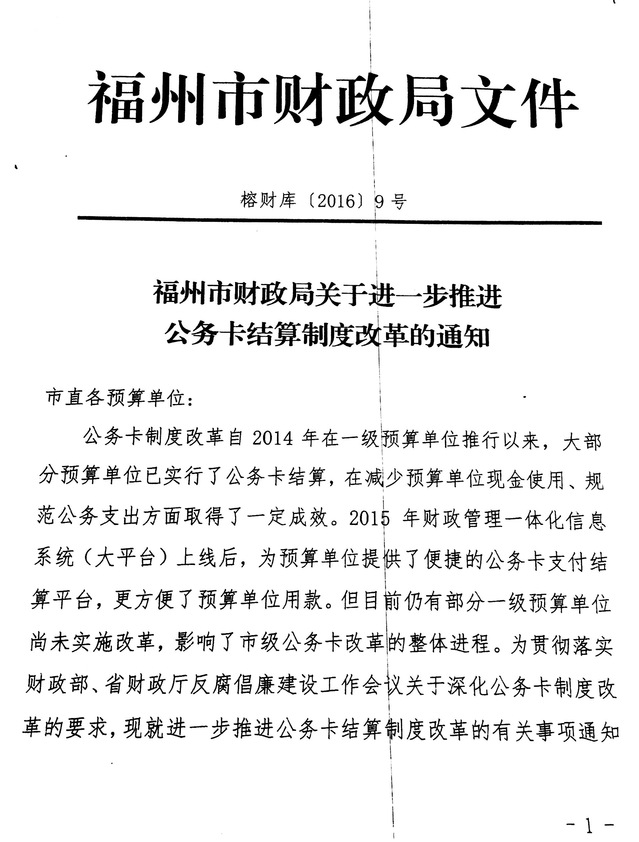 福州市財政局關(guān)于進一步推進公務(wù)卡結(jié)算制度改革的通知