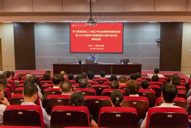 10月10日,我校舉辦學習貫徹黨的二十屆三中全會精神專題培訓班暨2024年領導干部素質(zhì)能力提升培訓班輔導講座,邀請福州市委黨校俞慈珍教授作《深入學習貫徹三中全會精神 推進中國式現(xiàn)代化》專題講座。講座由校黨委副書記劉春蘭主持,全體副科級及以上干部參加。