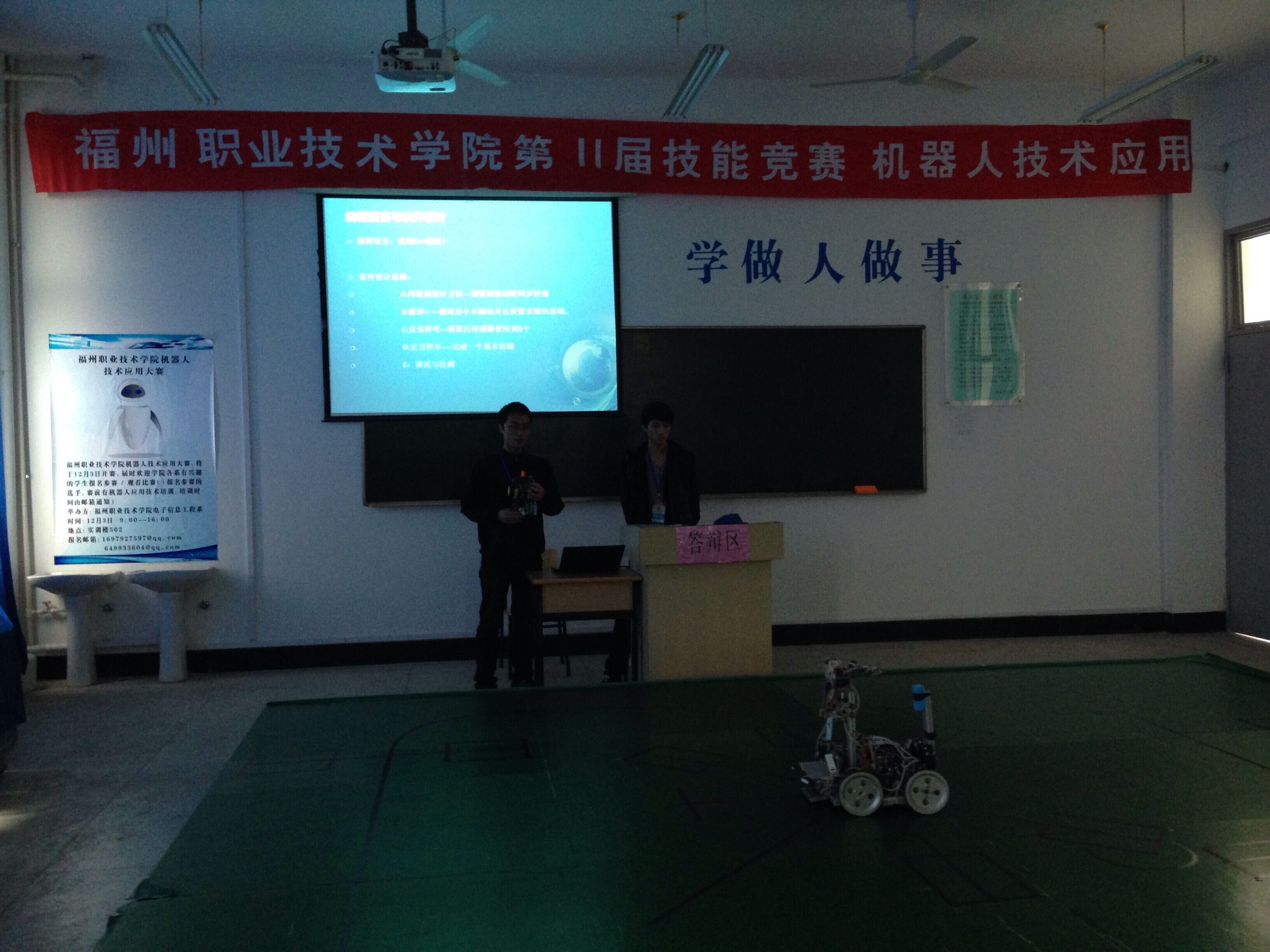 在系領(lǐng)導(dǎo)與院領(lǐng)導(dǎo)的關(guān)心支持下,經(jīng)過(guò)近一個(gè)多月的精心籌備,電子信息工程系于2014年12月03日下午,在實(shí)訓(xùn)樓203成功舉辦了第十一屆技能大賽中的“機(jī)器人制作”項(xiàng)目的比賽。