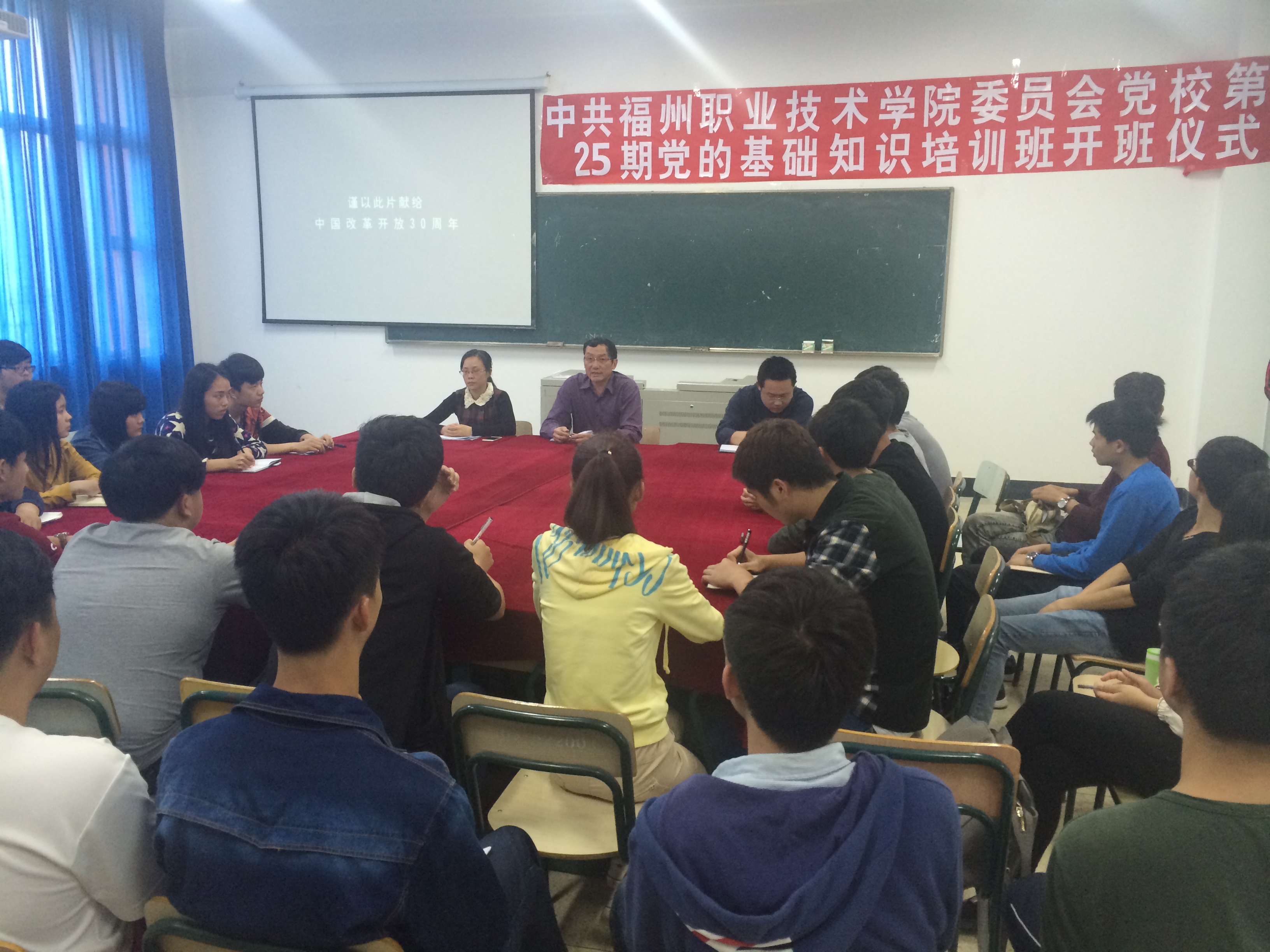 電子信息工程系于2015年5月6日下午在實(shí)訓(xùn)樓405召開第二十五期入黨積極分子黨的基礎(chǔ)知識(shí)培訓(xùn)班開班儀式。系黨總支書記李偉建、總支副書記楊君,輔導(dǎo)員李堃以及入黨積極分子出席了本次開班儀式。