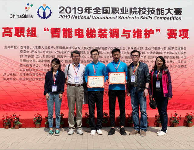 5月6日至9日,2019年全國職業(yè)院校技能大賽高職組“智能電梯裝調(diào)與維護”賽項在天津輕工職業(yè)技術(shù)學(xué)院舉辦,來自全國各地的89支代表隊及1支緬甸留學(xué)生代表隊參賽。建筑工程學(xué)院院長葉曉星率指導(dǎo)教師倪榕生、蔡碧貞、選手羅河林、馬啟元代表我校參賽。經(jīng)過激烈角逐,我校代表隊最終斬獲團體二等獎。