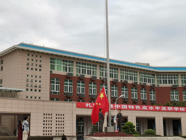 在全體師生的注目禮下,英姿颯爽的國(guó)旗護(hù)衛(wèi)隊(duì)隊(duì)員們護(hù)送鮮艷的五星紅旗進(jìn)場(chǎng),行禮完畢,伴隨著莊嚴(yán)的《中華人民共和國(guó)國(guó)歌》,五星紅旗冉冉升起。升旗儀式結(jié)束,工程造價(jià)19級(jí)學(xué)生代表張玥,在國(guó)旗下演講,她號(hào)召大家在時(shí)代的洪流里眾志成城,匯聚磅礴力量,惜時(shí),實(shí)干、創(chuàng)新。活動(dòng)最后,學(xué)院黨總支副書記楊君勉勵(lì)大家要“靡不有初,鮮克有終”八字箴言,在新學(xué)期中善始善終,不忘初心。