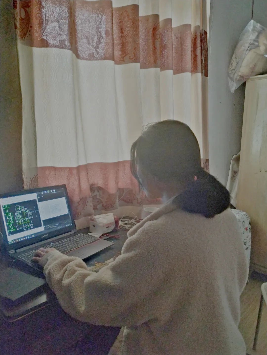 省級(jí)精品在線開(kāi)放課程主持人張彬彬老師在家中備課