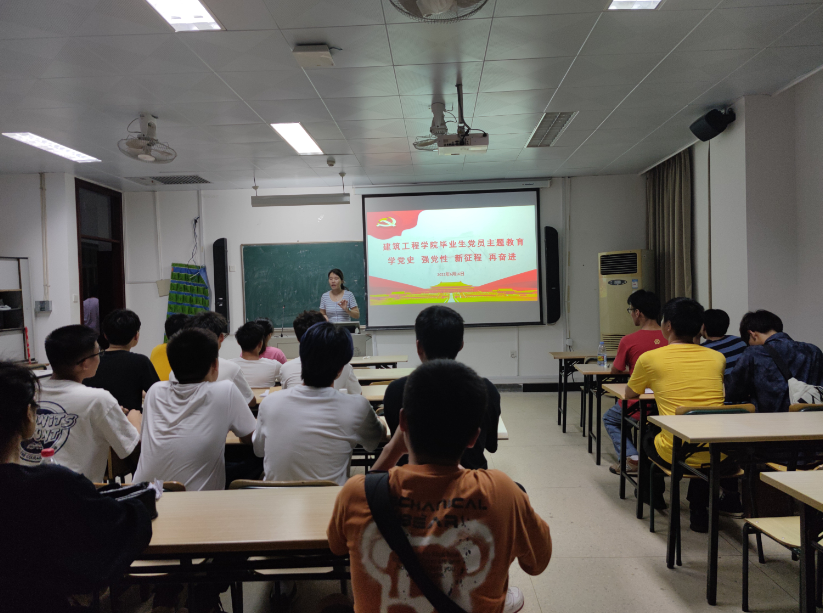 為進(jìn)一步提升畢業(yè)生黨員的黨性修養(yǎng),激勵(lì)畢業(yè)生黨員不忘初心砥礪前行,6月16日晚,建筑工程學(xué)院在電子樓401教室開展2021屆畢業(yè)生黨員“學(xué)黨史 強(qiáng)黨性 新征程 再奮進(jìn)”主題教育活動(dòng)。