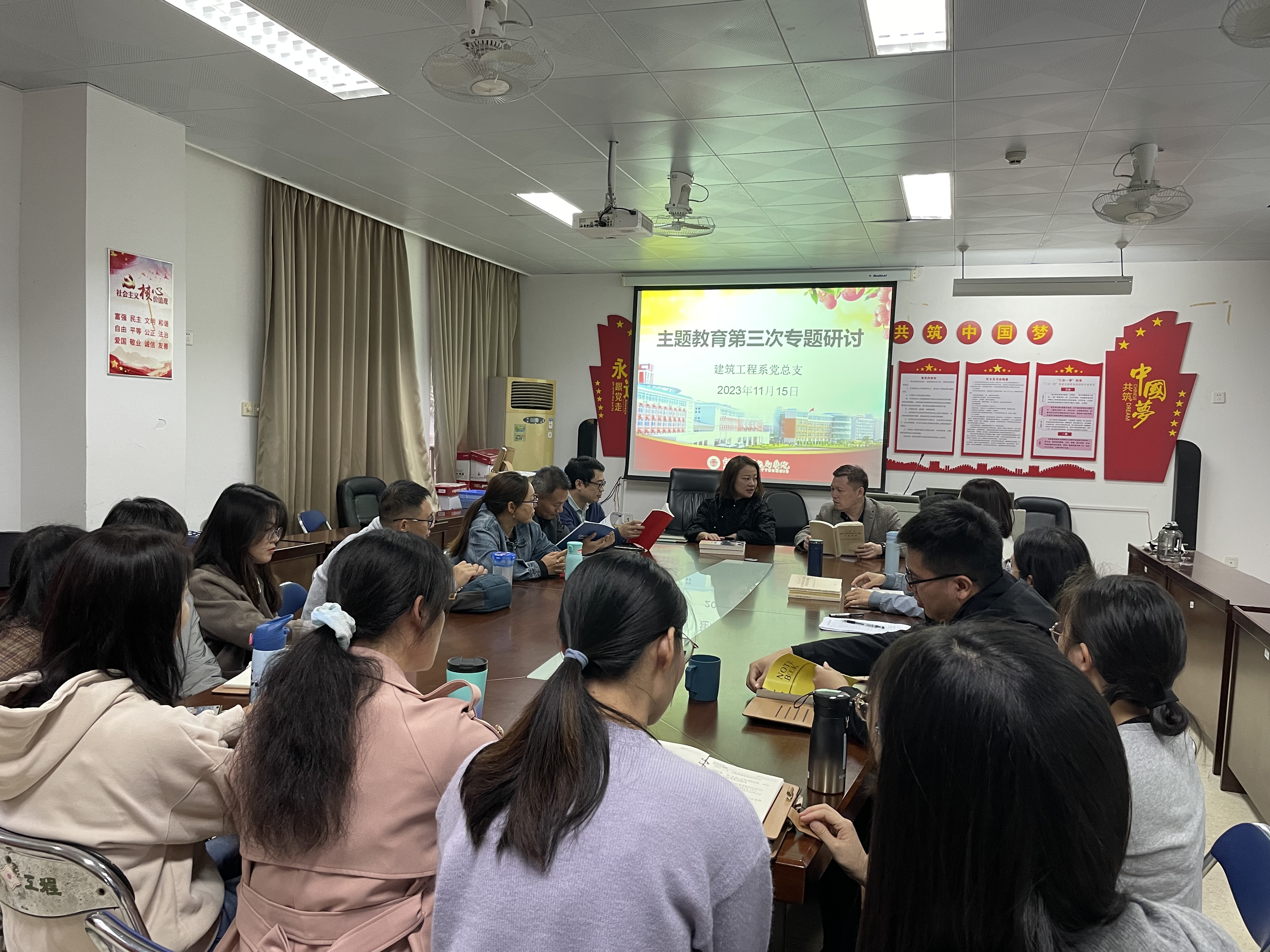 為扎實(shí)深入開(kāi)展第二批主題教育,11月15日,建筑工程系黨總支召開(kāi)了主題教育第三次集中學(xué)習(xí)研討會(huì)。本次研討由建筑工程系黨總支副書(shū)記葉彩虹主持,系主任葉曉星、全體黨員同志參加。