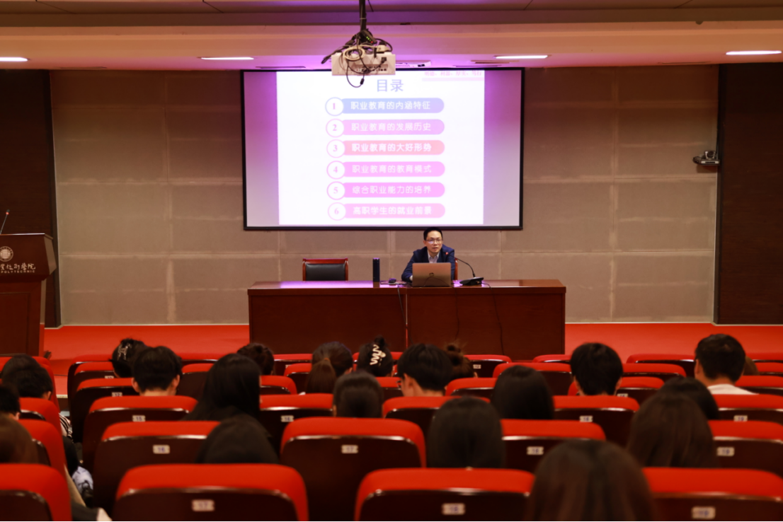肖勇杰老師從職業(yè)教育的內(nèi)涵特征、發(fā)展歷史、大好形勢和教育模式這四個(gè)方面入手,勉勵(lì)同學(xué)們在職業(yè)教育形勢大好的背景下,要注重綜合職業(yè)能力的培養(yǎng),積極提升自身的專業(yè)能力、方法能力和社會(huì)能力,在職業(yè)教育的廣闊舞臺上成就出彩人生。