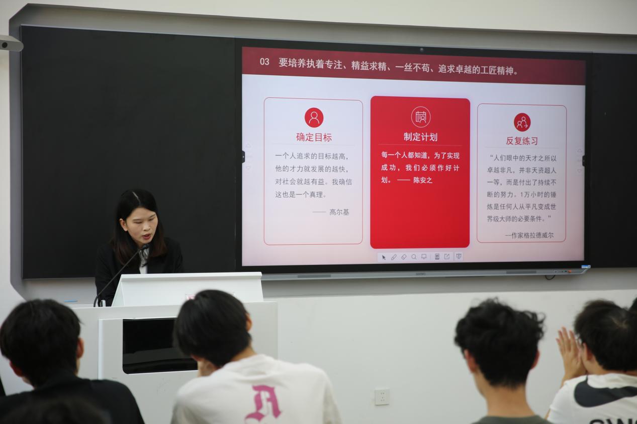 互動(dòng)環(huán)節(jié)中,智能建造技術(shù)專業(yè)的林同學(xué)提問職業(yè)發(fā)展困惑,王小穎結(jié)合工作室培養(yǎng)機(jī)制回應(yīng):“技術(shù)技能成長(zhǎng)需要‘三維坐標(biāo)系’——縱向深耕專業(yè)、橫向拓展跨領(lǐng)域知識(shí)、向遠(yuǎn)關(guān)注行業(yè)前沿。”