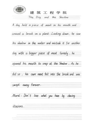 為夯實學(xué)生英語書寫基礎(chǔ),以經(jīng)典寓言浸潤思想,近日,建筑工程學(xué)院團總支于揚帆社區(qū)舉辦一場英語抄寫比賽,以筆為媒,傳遞語言之美;以文為橋,感悟智慧之光。