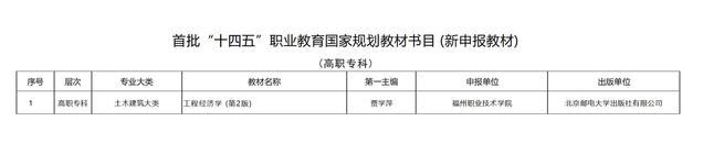 日前,教育部公布了首批“十四五”職業(yè)教育國家規(guī)劃教材,共確定7251種教材入選。首批規(guī)劃教材涵蓋19個專業(yè)大類、1382個專業(yè)。我校建筑工程系賈學(xué)萍老師主編的《工程經(jīng)濟(jì)學(xué)(第2版)》入選。