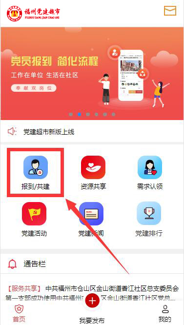 根據(jù)市委組織部《關(guān)于做好街道社區(qū)與機關(guān)、行業(yè)黨組織共駐共建、互聯(lián)互動工作的要求》(榕委組明電〔2019〕30號)和市委教育工委《關(guān)于加強學(xué)校黨組織與街道社區(qū)共駐共建、互聯(lián)互動的通知》,根據(jù)市里安排部署,我校與倉山區(qū)建新鎮(zhèn)金港社區(qū)黨支部開展共駐共建,要求在職黨員要通過“線上線下”雙報到,積極融入街道社區(qū),作為我校“不忘初心、牢記使命”主題教育深入基層、聯(lián)系群眾的一種新模式全力推進。線上報到依托“黨建超市”平臺,各基層黨組織全體黨員要登錄“黨建超市”平臺進行實名注冊,通過平臺到網(wǎng)格社區(qū)報到,認(rèn)領(lǐng)社區(qū)上傳發(fā)布的群眾需求,積極主動參加街道、社區(qū)活動。各基層黨組織要于9月25日前(下周三),完成組織激活、全體黨員注冊、聯(lián)絡(luò)員審核、黨員進社區(qū)報到等工作。為進一步使用好“黨建超市”平臺,現(xiàn)就“黨建超市”平臺操作流程說明如下(具體方法可以參考PPT或者“福州黨建超市”公眾號):