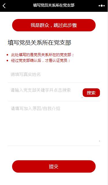 ⑤如果是黨員,請?zhí)顚懽约旱乃邳h支部,如果是群眾,直接跳過;