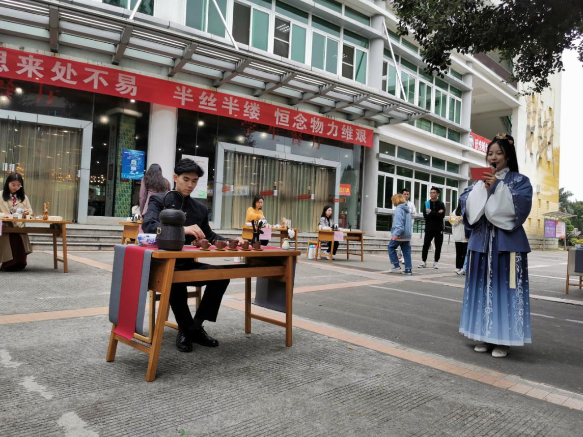 為貫徹落實(shí)習(xí)近平總書(shū)記關(guān)于教育的重要論述和全國(guó)教育大會(huì)精神,進(jìn)一步強(qiáng)化學(xué)校美育育人功能,構(gòu)建德智體美勞全面培養(yǎng)的教育體系。2020月12月9日上午,公共教育部美育教研室面對(duì)全院師生在南食堂廣場(chǎng)開(kāi)展了《勵(lì)園書(shū)香話(huà)茶韻---校園雅集之茶會(huì)》活動(dòng),由美育教研室宋玉琳、楊霞老師參與指導(dǎo)。