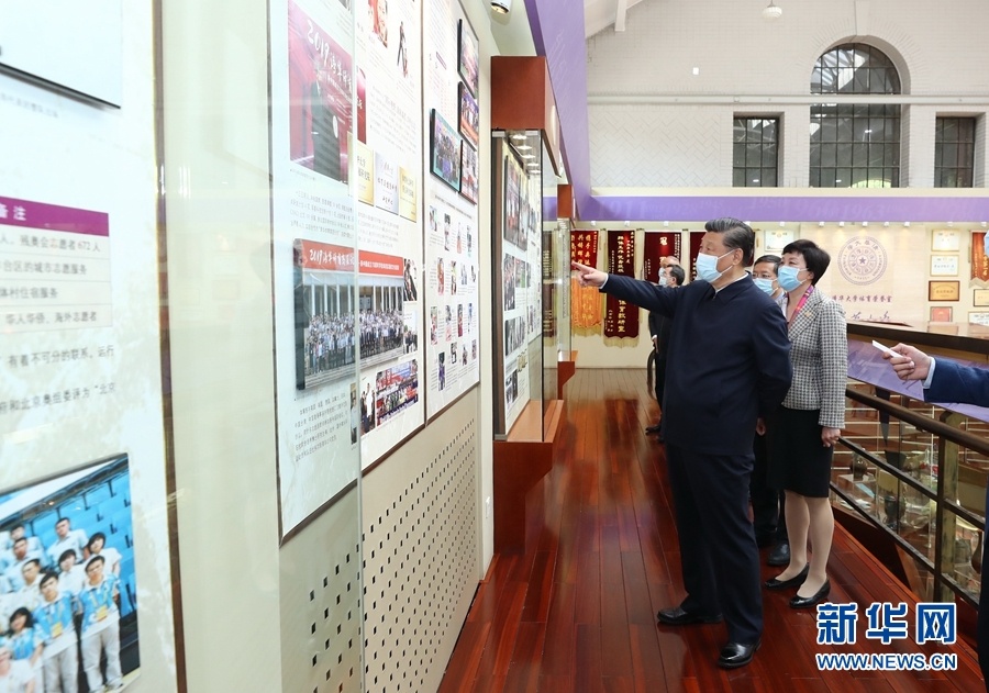 4月19日,在清華大學(xué)建校110周年校慶日即將來(lái)臨之際,中共中央總書(shū)記、國(guó)家主席、中央軍委主席習(xí)近平來(lái)到清華大學(xué)考察。這是習(xí)近平在清華大學(xué)西體育館體育榮譽(yù)室察看歷史照片、實(shí)物展覽,了解體育館保護(hù)利用、學(xué)校繼承發(fā)揚(yáng)優(yōu)良傳統(tǒng)、開(kāi)展體育教育等情況。新華社記者 鞠鵬 攝