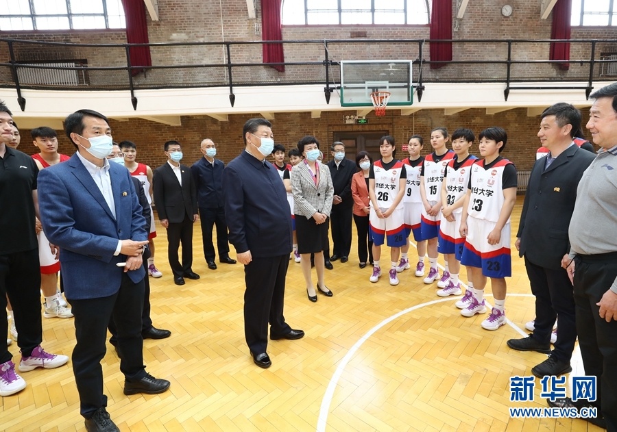4月19日,在清華大學(xué)建校110周年校慶日即將來(lái)臨之際,中共中央總書(shū)記、國(guó)家主席、中央軍委主席習(xí)近平來(lái)到清華大學(xué)考察。這是習(xí)近平在清華大學(xué)西體育館籃球場(chǎng)同?;@球運(yùn)動(dòng)員親切交談。新華社記者 鞠鵬 攝